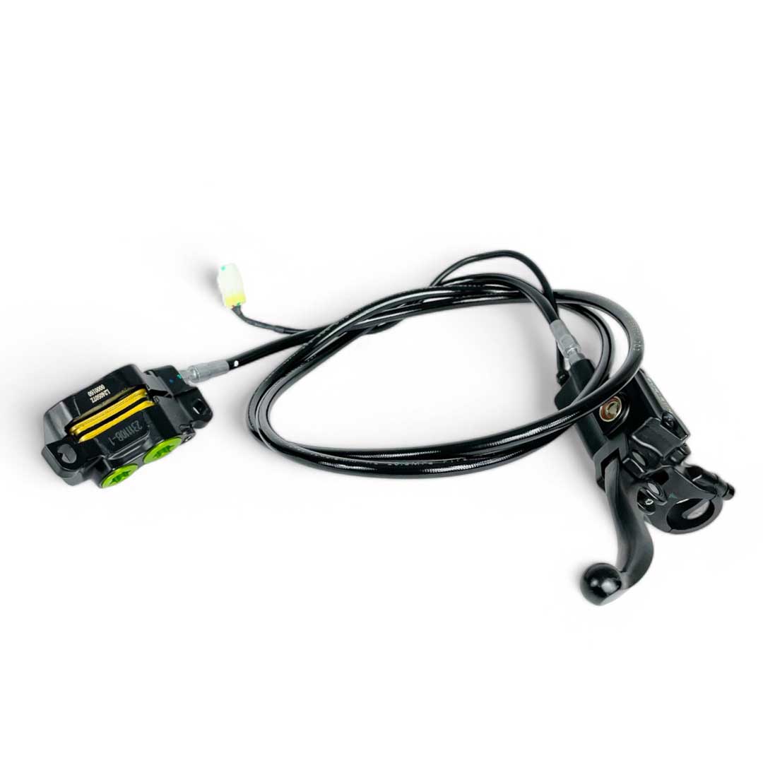 Chaque ensemble comprend le maître-cylindre, la durite de frein, l'étrier ainsi que les plaquettes de frein. Ces pièces détachées frein Sur-Ron arrivent déjà assemblées et purgées, prêtes à monter directement sur votre moto électrique. De plus, les capteurs essentiels au fonctionnement du feu stop et du freinage régénératif sont intégrés, assurant une installation rapide et une utilisation immédiate.