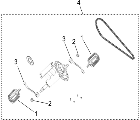 - Controleer de onderdelen: Zijn alle pedalen, crankarmen en de ketting aanwezig?