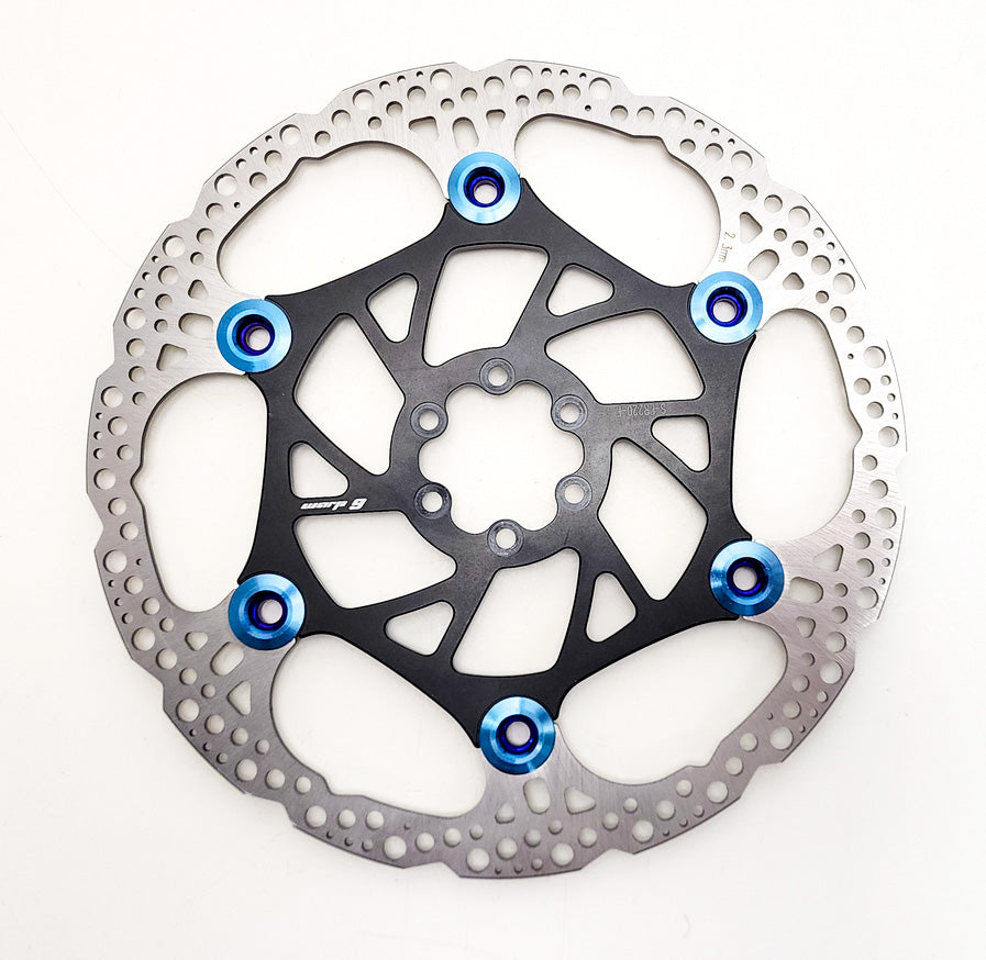 Warp 9 Flytande Främre Bromsskiva ø220mm - kompromissar aldrig med kvalitet. Den anodiserade svarta aluminiumdelen håller vikten låg utan att tumma på styrkan, medan de brända titannitarna inte bara förstärker konstruktionen utan också tillför en rå, racinginspirerad estetik.