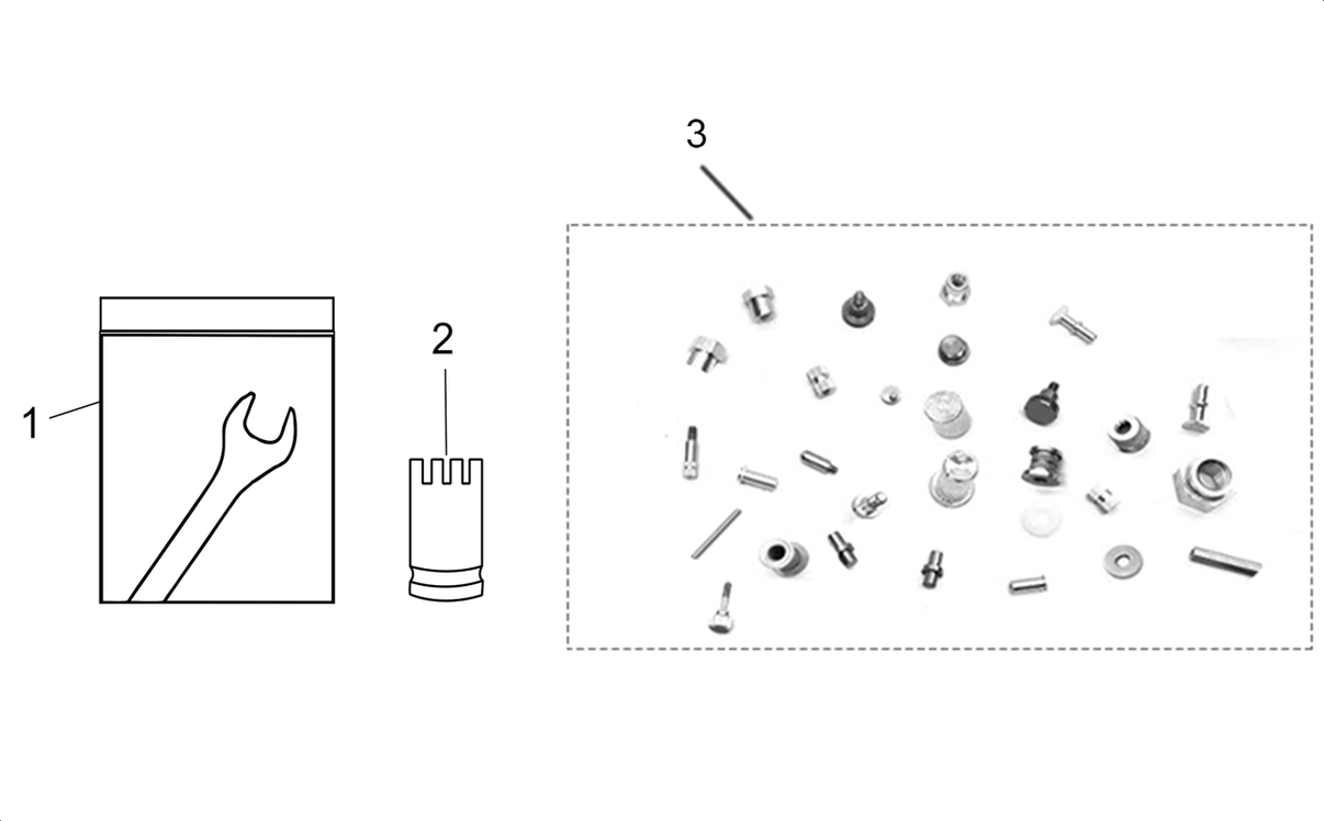 • Nödvändiga reservdelar - bultar, brickor, klämmor, säkringar